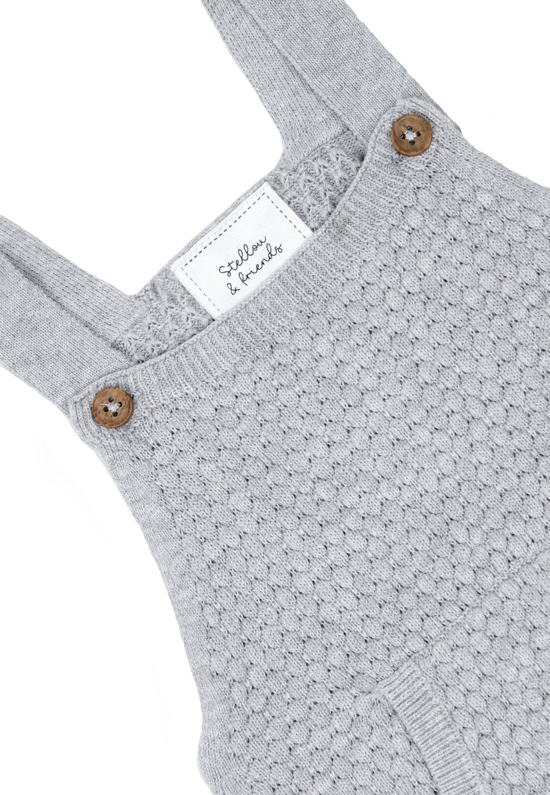 Stellou & Friends – Only the Best for Little Ones! This cozy knit bib overalls provide a comfortable feel thanks to the relaxed fit and are incredibly soft. The practical snaps on the shoulder straps make it easy to put on and take off the onesie. The two adjustable snaps per shoulder strap allow for length adjustments. The front pocket adds another cute detail. Paired with a pullover or body, it creates a casual, stylish outfit. Stellou & Friends brings Swiss design quality to your baby’s wardrobe.