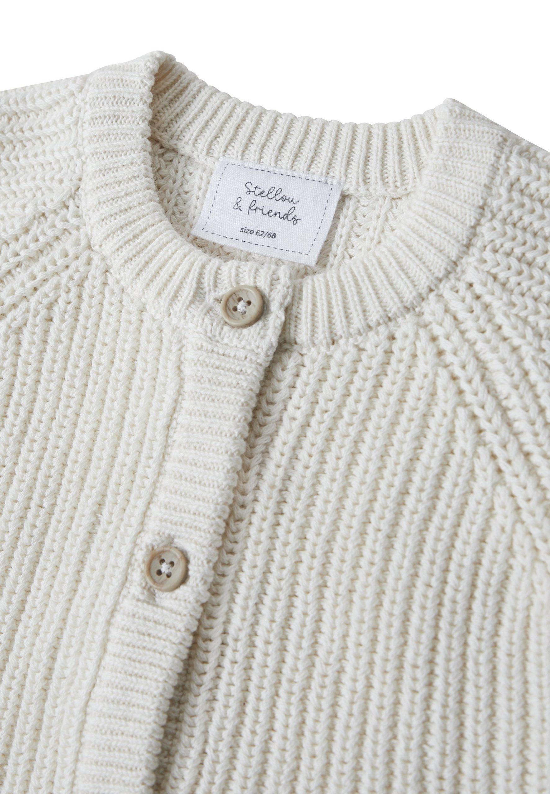 Stellou & Friends – Only the best for your little ones! This cardigan is knitted in a decorative texture that creates a natural look. The 100% cotton fabric has a soft feel. The elegant design is complemented by wooden-look buttons and raglan sleeves with cuffs.