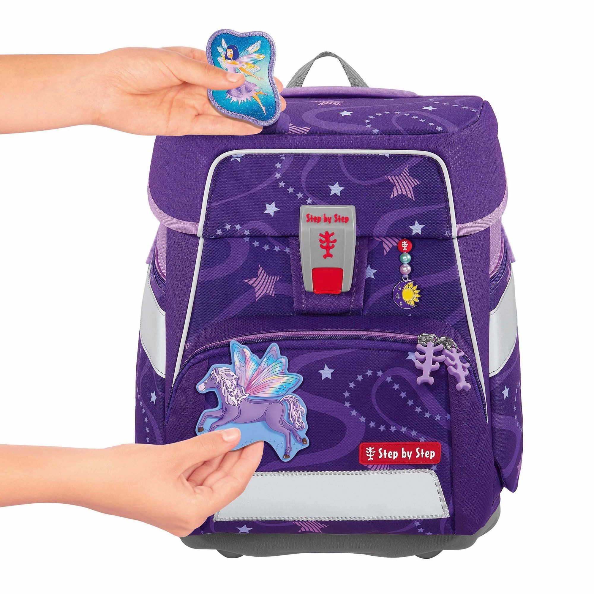 The Step by Step Space school bag set grows with your child! This 5-piece set transforms from a robust school bag to a cool backpack, making the transition from primary to secondary school seamless.