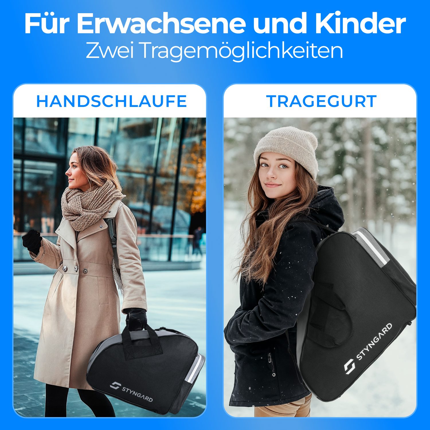 The Styngard Montreal Sport Bag isn’t just a hockey bag; it’s a versatile solution for all your ice sports gear. Designed for both men and women, this durable bag serves as a premium schlittschuhtasche (ice skate bag), perfect for figure skating, hockey, and recreational skating. It’s also an excellent inliner tasche (inline skate bag) for skaters of all ages. Keep your Styngard skates, helmets, and other equipment safe and organized with this spacious and robust bag. Whether you’re heading to the rink or hitting the trails, the Montreal bag offers reliable protection and easy transport. It functions remarkably as a ski tasche (ski bag) or even an eishockey tasche (hockey bag) due to its generous capacity. This high-quality bag from Styngard ensures your gear is ready when you are. From the rink to the trails, protect your gear with the Styngard Montreal bag.