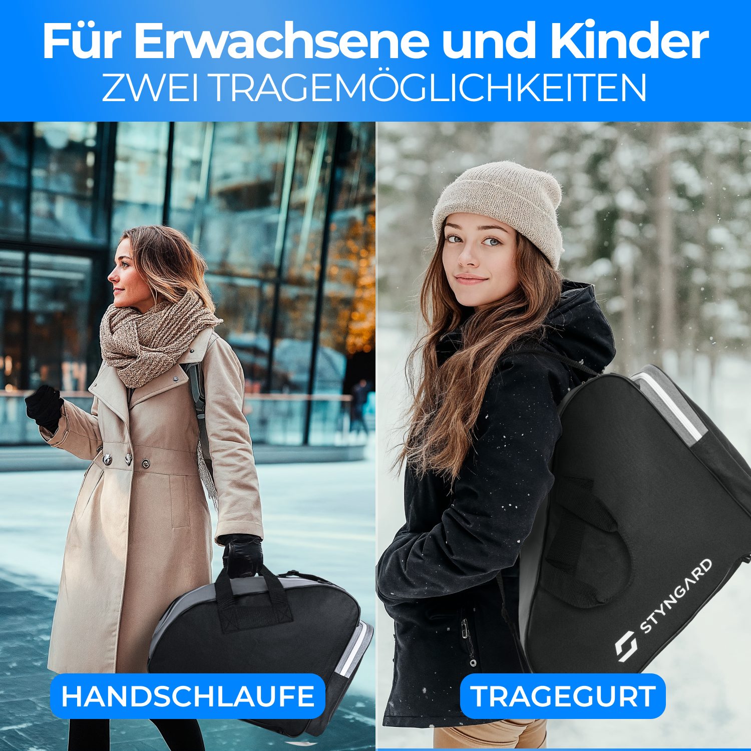 The Styngard Montreal Sport Bag isn’t just a hockey bag; it’s a versatile solution for all your ice sports gear. Designed for both men and women, this durable bag serves as a premium schlittschuhtasche (ice skate bag), perfect for figure skating, hockey, and recreational skating. It’s also an excellent inliner tasche (inline skate bag) for skaters of all ages. Keep your Styngard skates, helmets, and other equipment safe and organized with this spacious and robust bag. Whether you’re heading to the rink or hitting the trails, the Montreal bag offers reliable protection and easy transport. It functions remarkably as a ski tasche (ski bag) or even an eishockey tasche (hockey bag) due to its generous capacity. This high-quality bag from Styngard ensures your gear is ready when you are. From the rink to the trails, protect your gear with the Styngard Montreal bag.