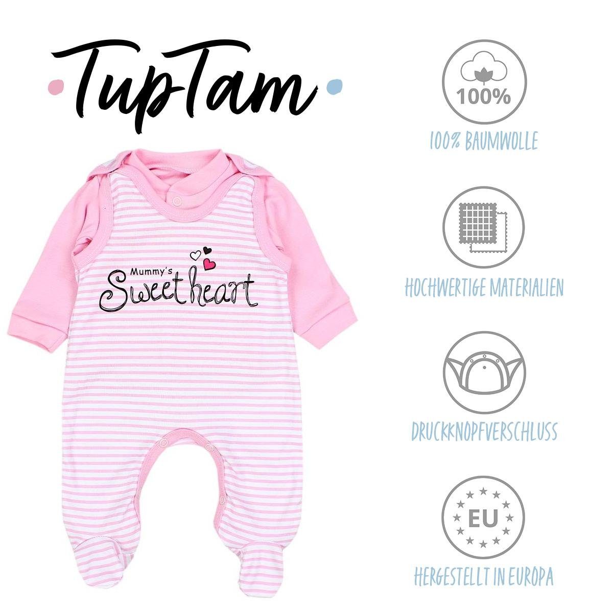 Discover the comfort and charm of the TupTam 2-Piece Baby Clothing Set! This adorable set includes a soft, organic cotton romper featuring a playful animal print (giraffe, zebra) or a heartwarming ‚I Love Mum and Dad‘ slogan, paired with a cozy baby jacket.