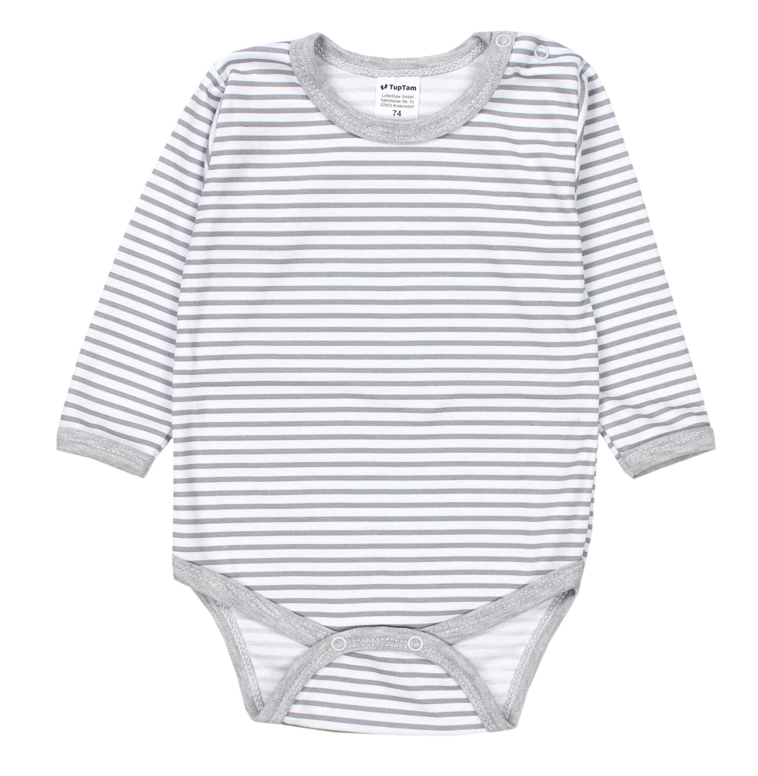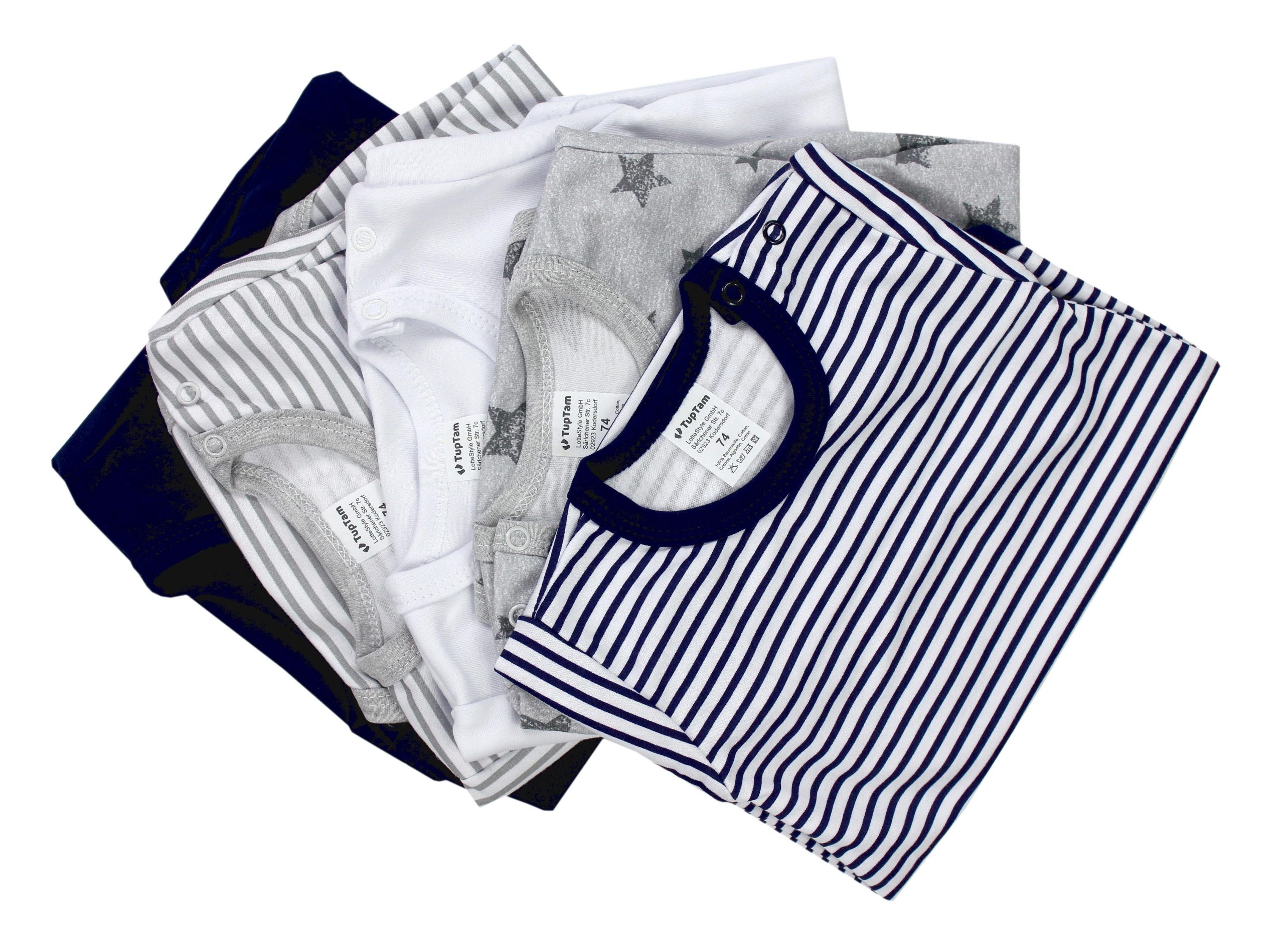 Komfortabler Baby Langarmbody für Jungen im 5er Set aus reiner Baumwolle. Praktische Druckkнопfleiste für einfaches Anziehen und Ausziehen.