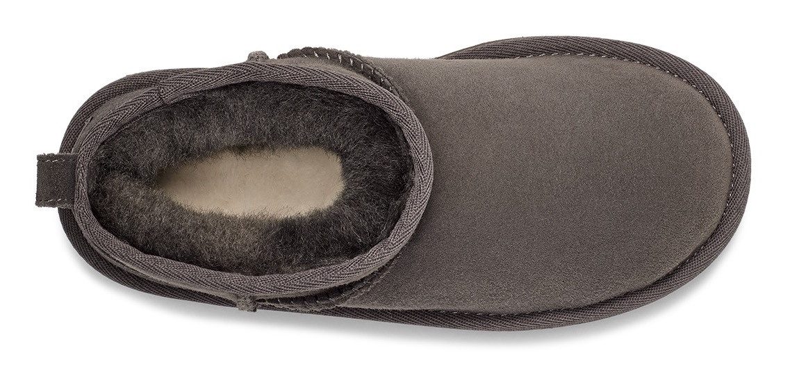 Der vielseitige Classic Ultra Mini mit niedrigerer Schafthöhe lässt sich ganz einfach an- und ausziehen. Das Obermaterial wurde vorbehandelt, damit es länger schön aussieht. Außerdem besitzt der Classic alle Eigenschaften, die Kinder am Original lieben: unser charakteristisches Lammfellfutter, eine ultraweiche UGGplush™ Innensohle und eine ultralichte, flexible Sohle, dank der sie von früh bis spät herumtollen können. Hol dir den passen den Boot in Erwachsenengrößen für einen süßen Partnerlook mit deinem Mini-Me.