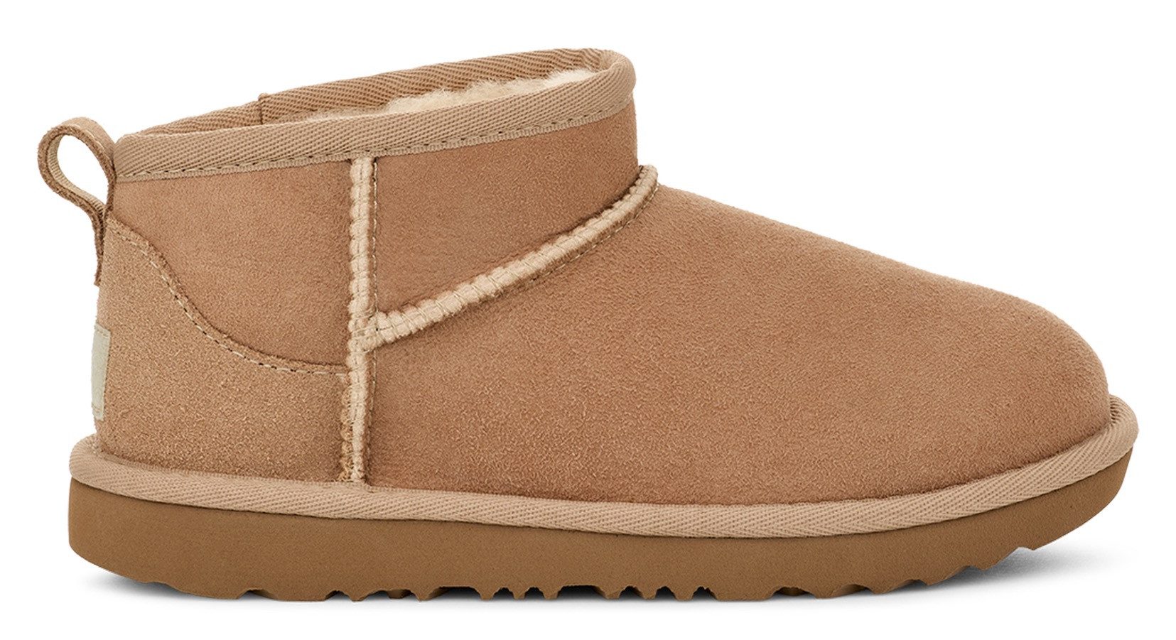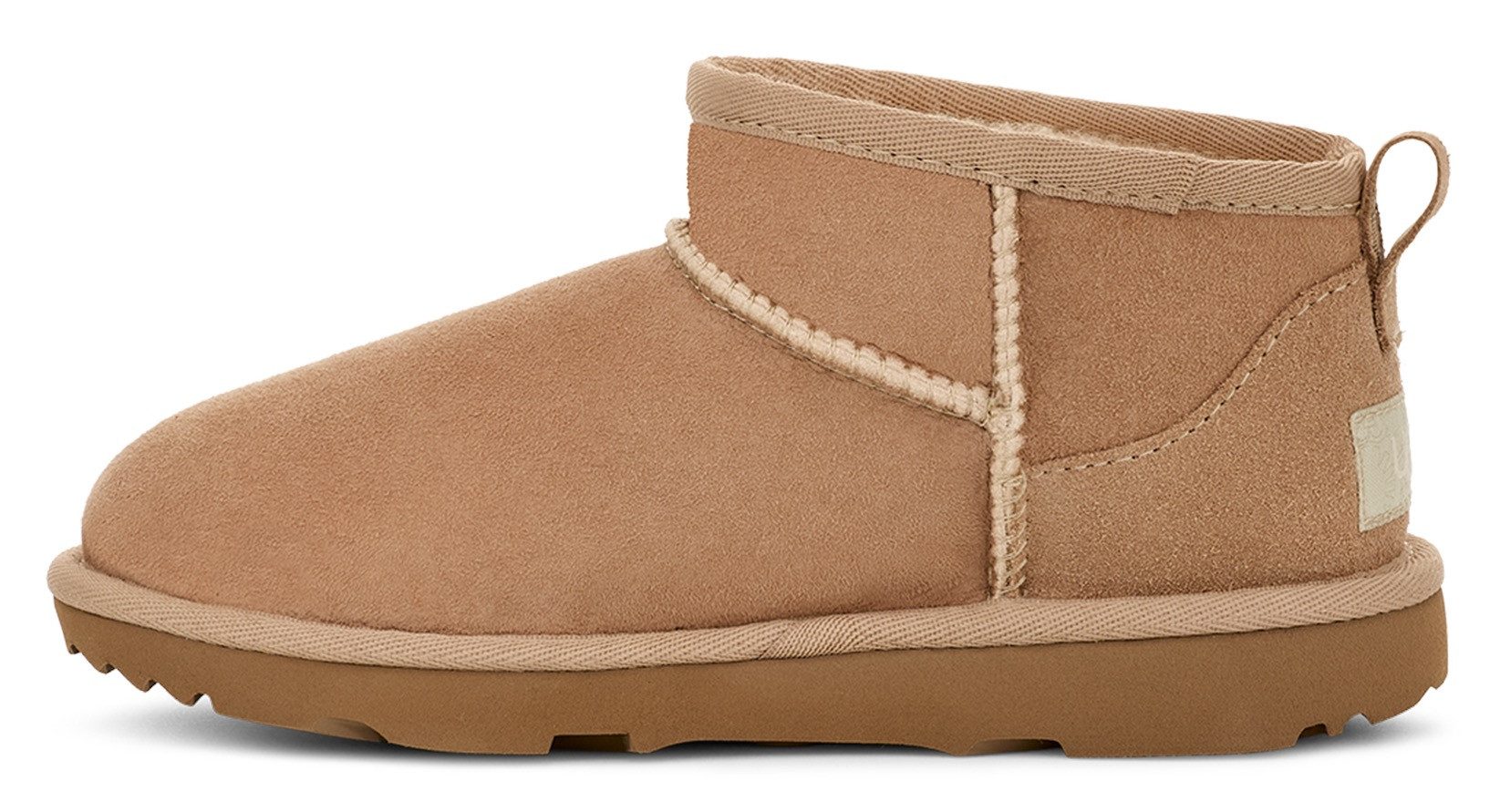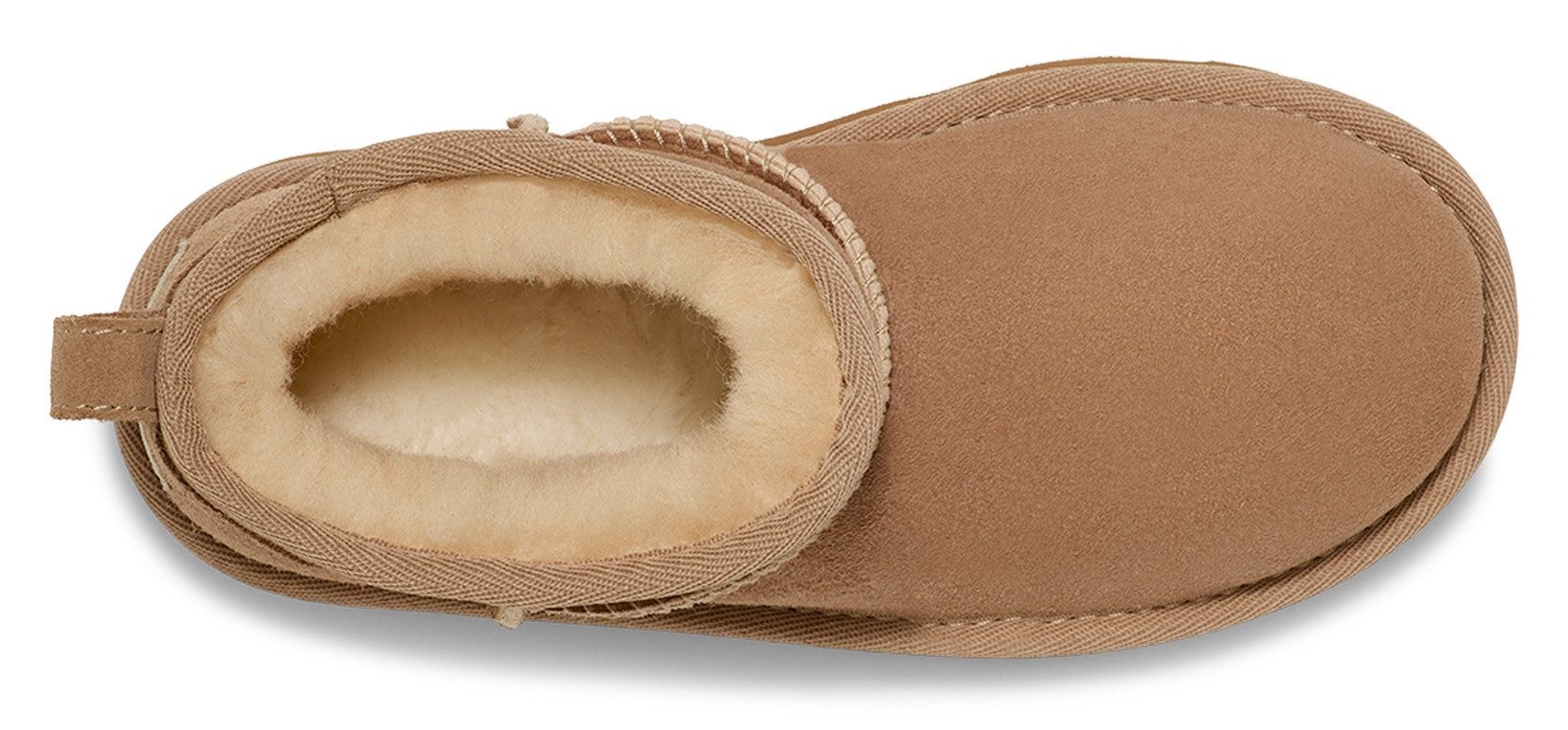 Der vielseitige Classic Ultra Mini mit niedrigerer Schafthöhe lässt sich ganz einfach an- und ausziehen. Das Obermaterial wurde vorbehandelt, damit es länger schön aussieht. Außerdem besitzt der Classic alle Eigenschaften, die Kinder am Original lieben: unser charakteristisches Lammfellfutter, eine ultraweiche UGGplush™ Innensohle und eine ultralichte, flexible Sohle, dank der sie von früh bis spät herumtollen können. Hol dir den passen den Boot in Erwachsenengrößen für einen süßen Partnerlook mit deinem Mini-Me.