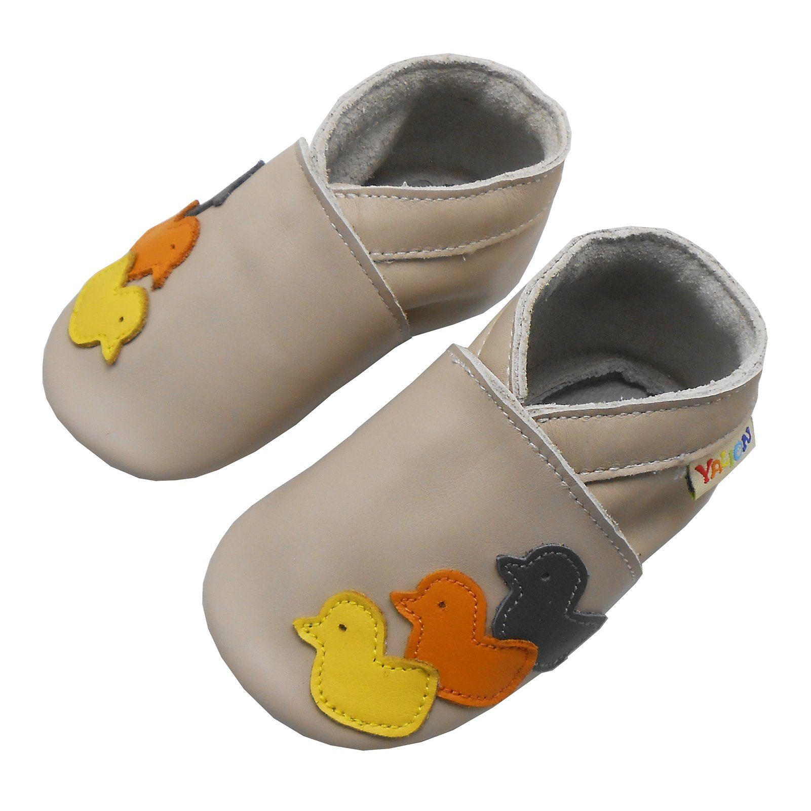 Yalion® Krawling- und Laufenlernschuhe werden aus echtem Leder in liebevoller Handarbeit gefertigt. Diese atmungaktiven und weichen Schuhe sind ideal für die zarten Füße Ihrer Kleinen. Die leicht verformbare Form ermöglicht eine optimale Passform, während die abgerundete Spitze und Ferse komfortablen Platz und natürliches Wachstum fördern. Yalion Schuhe hinterlassen keine Druckstellen und bieten ein barfußähnliches Gefühl, da sie weich und rutschsicher sind. Sie schützen die Füße beim Laufen und sind perfekt zum Krabbeln. Dank des elastischen Gummi bands lassen sie sich leicht anziehen. Das Leder ist weder zu dünn noch zu dick, sodass die Schuhe sowohl für den Innen- als auch für den Außenbereich geeignet sind – egal ob auf Asphalt oder im Gras. Vielseitig einsetzbar als Krabbel-, Hausschuhe, Turnschuhe oder Lederpuschen, sind sie stets ein Blickfang in der Familie oder Krabbelgruppe.